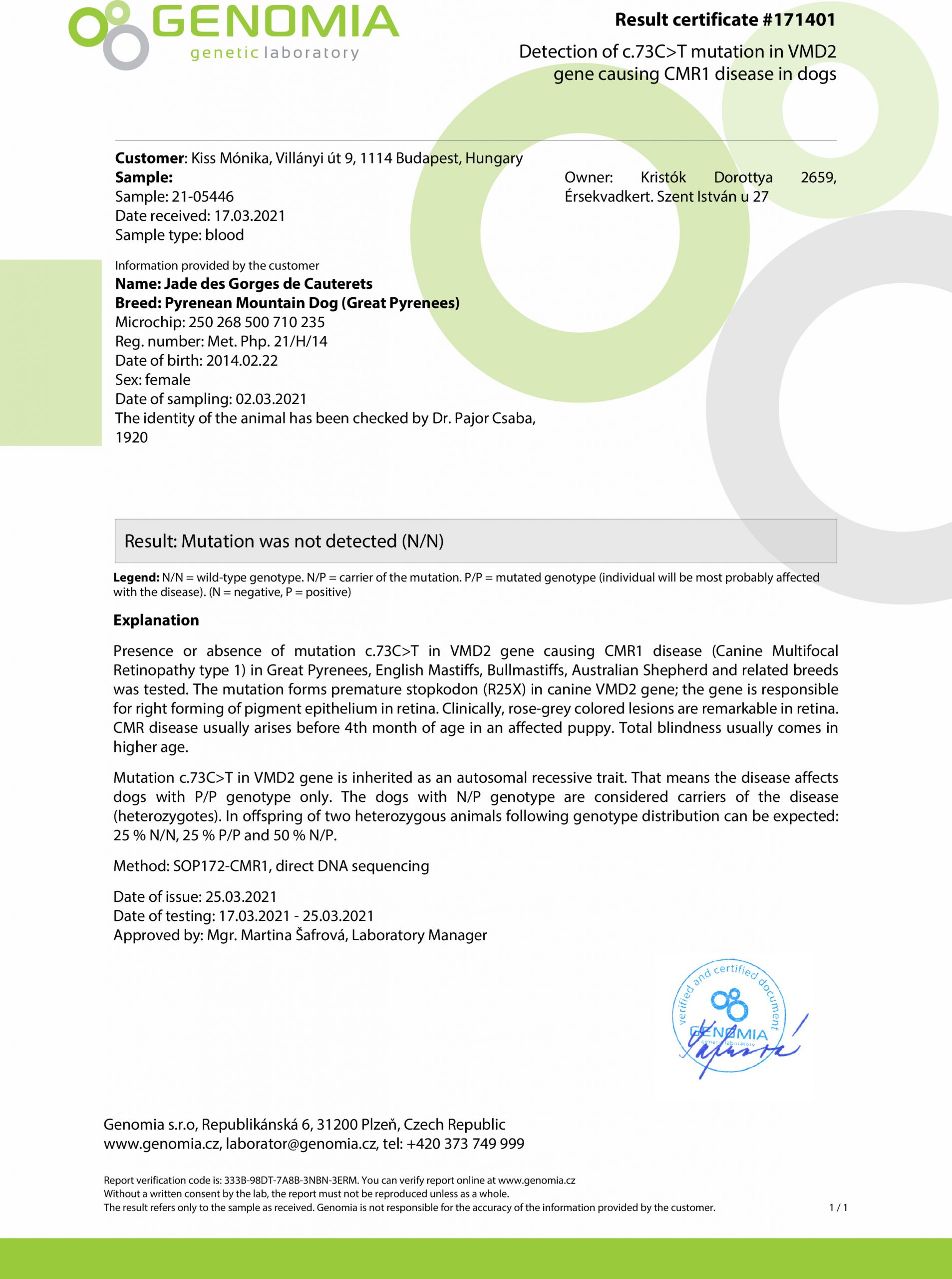CMR1: N/N (negative/negative)